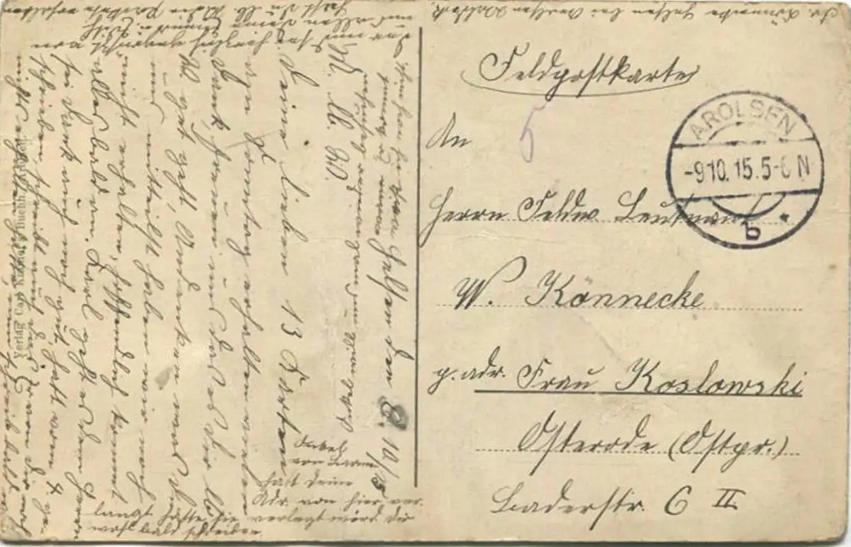 Bad Arolsen - Rauchstrasse - Feldpost- Gebrauchsspuren - Knicke (E25783) gel. 1915
