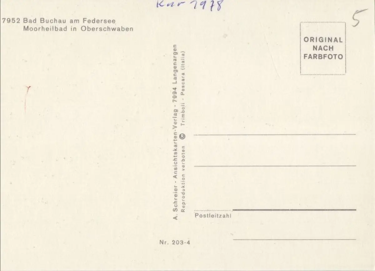 Postleitzahl:88422 (neu) / W 7952 (alt)