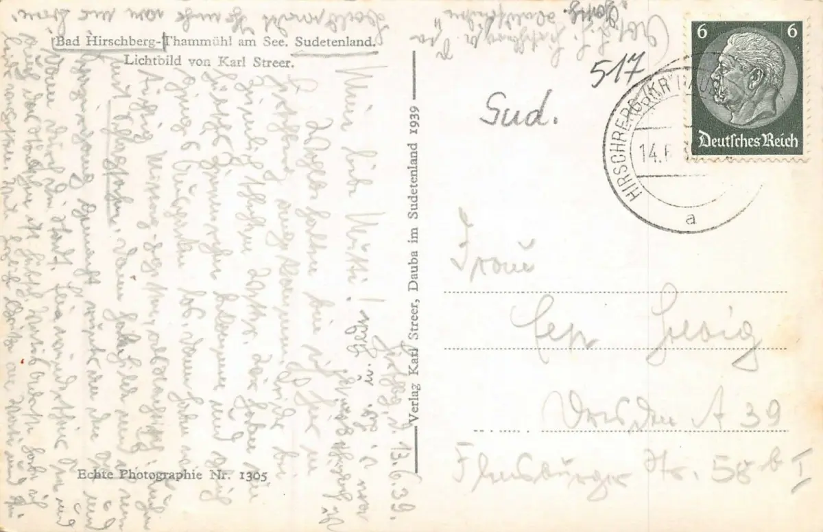 Bad Hirschberg-Thammühl am See Sudetenland AK 1939