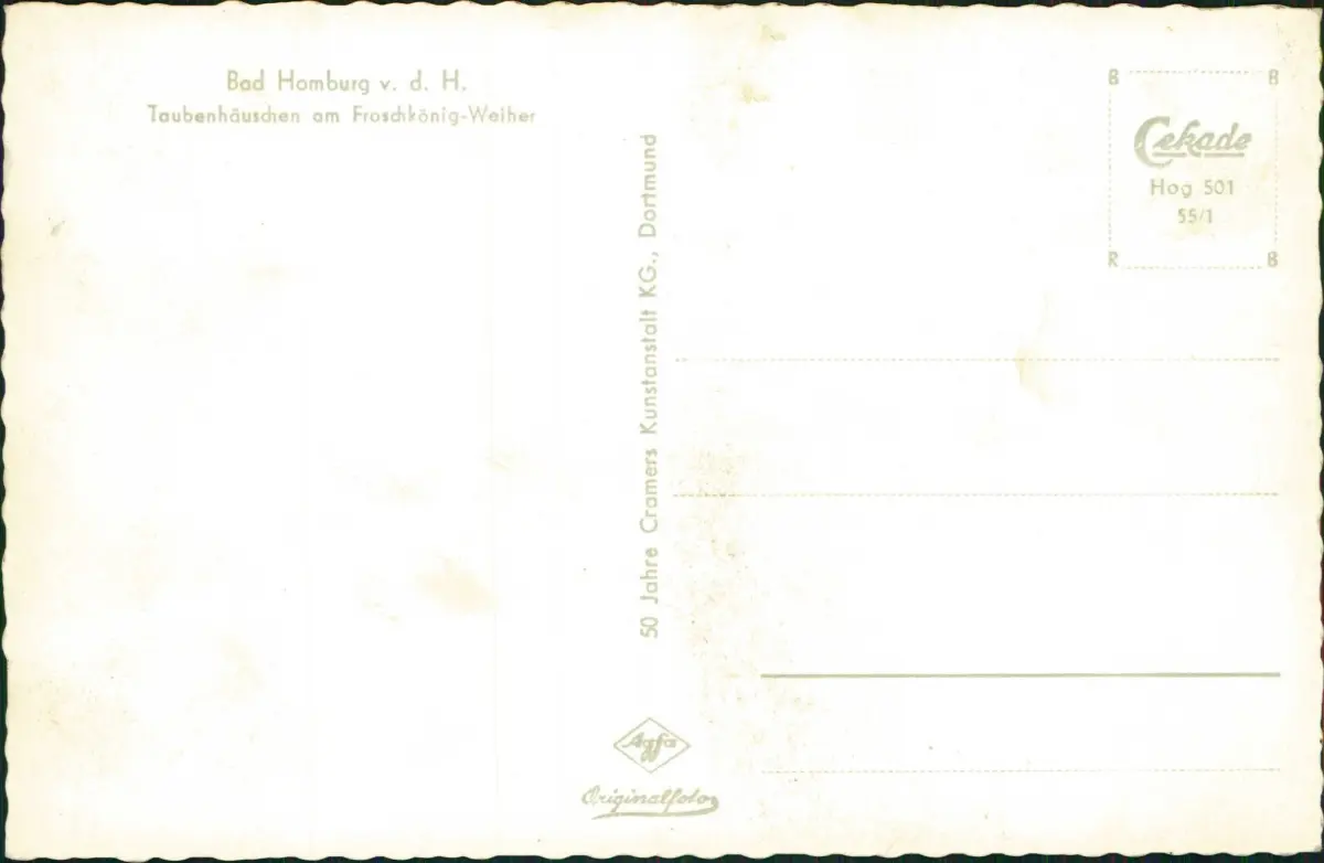 Bad Homburg Höhe Taubenhäuschen am Froschkönig-Weiher Colorfotokarte 1955