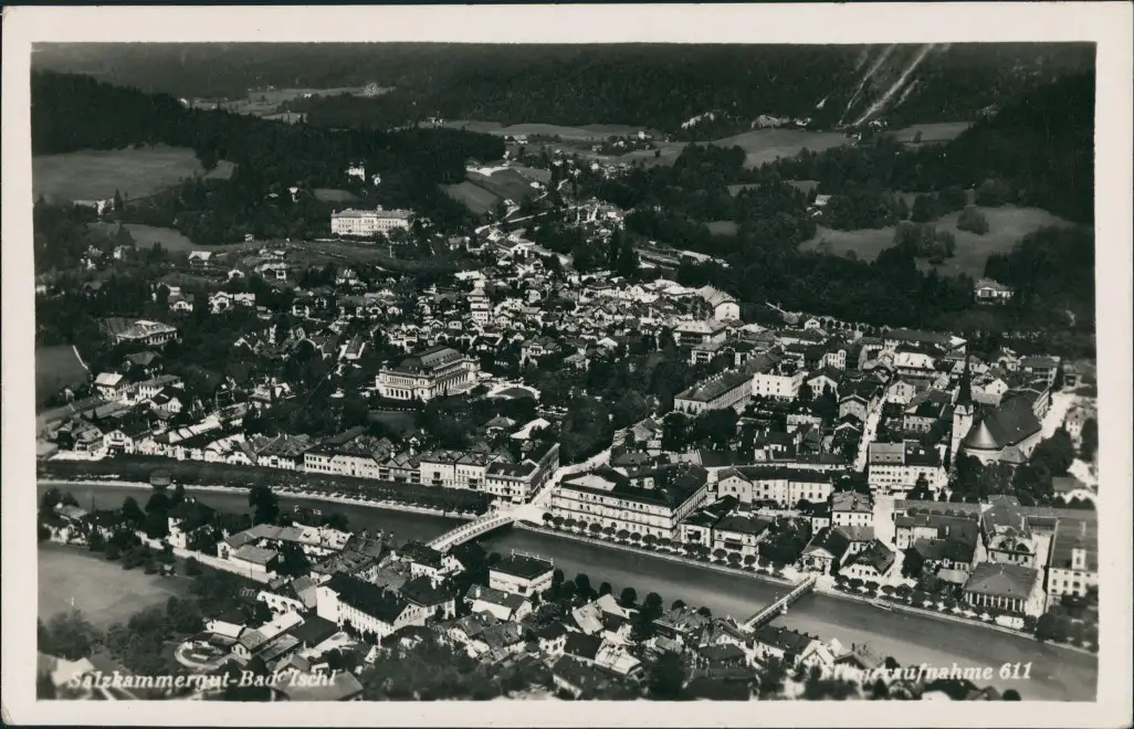 Bad Ischl Panorama-Ansicht Fliegeraufnahme Fluss Partie & Zentrum 1940