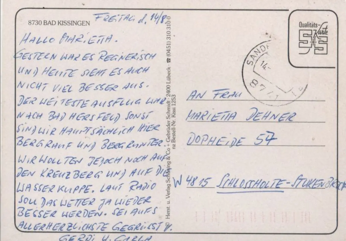Ich hatte die Rechnung sofort als Vorkasse bezahlt, aber keine Zusendung der Karte erhalten. Trotz Nachfrage keine Rückmeldung bzw. Erklärung. Da es sich zum Glück nur um 1,70 € handelt, ist die Sache für mich erledigt, ärgerlich, aber zu verkraften. Mit den drei anderen Karten, die ich bestellt hatte, hat alles wunderbar geklappt.