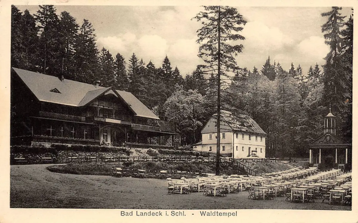 Bad Landeck Schlesien Waldtempel Restaurant Postkarte 1939