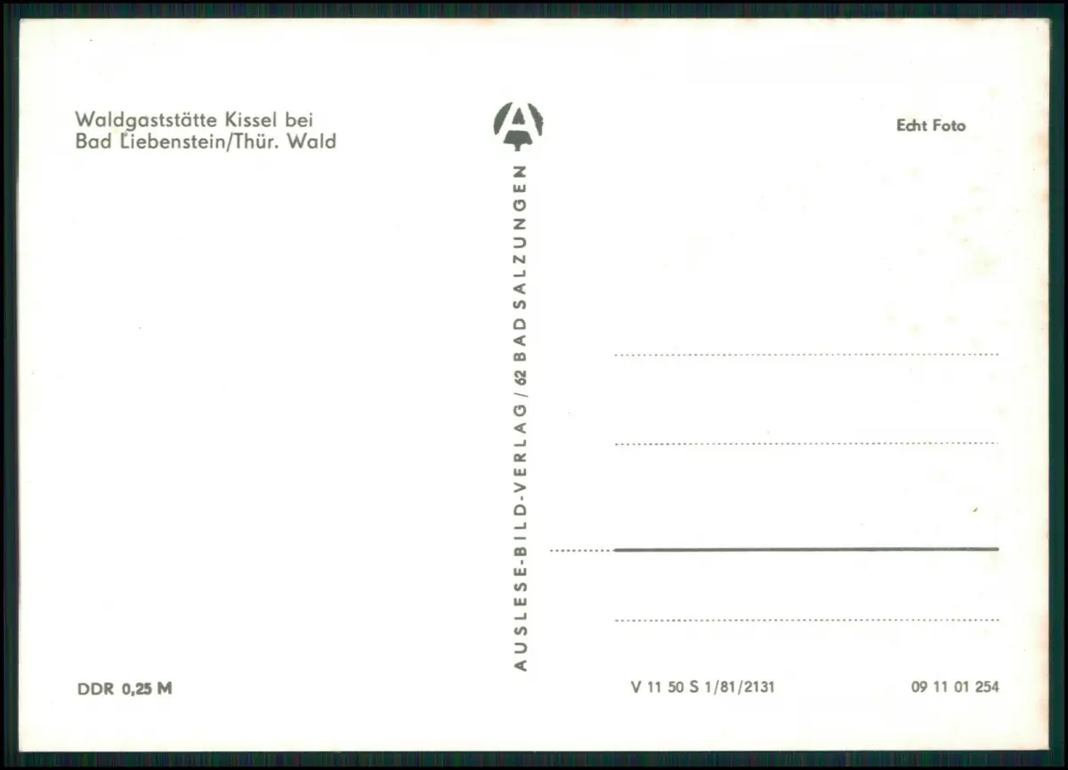 Bad Liebenstein im Thüringer Wald – historische Mehrbild-Darstellung der Waldgaststätte Kissel mit Bernhardseiche. Originale DDR-Fotopostkarte (Auslese-Bild-Verlag Bad Salzungen, Echt Foto, ca. 1980). Typische Architektur des Thüringer Waldes, beliebtes Ausflugsziel in der Nähe von Bad Liebenstein. Bad Liebenstein als ältester Kurort Thüringens mit Tradition seit dem 16. Jh.) Rückseite: unbeschrieben, sauber, Verlag und Preisangabe „DDR 0,25 M“.