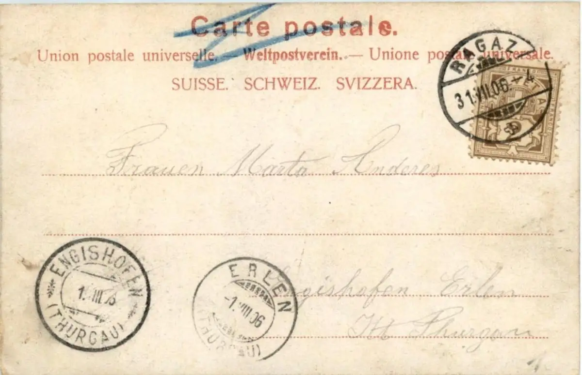 Danke. Alles Bestens. Können Sie mir allenfalls mitteilen, aus welchem Jahr die Postkarte stammt? Besten Dank.