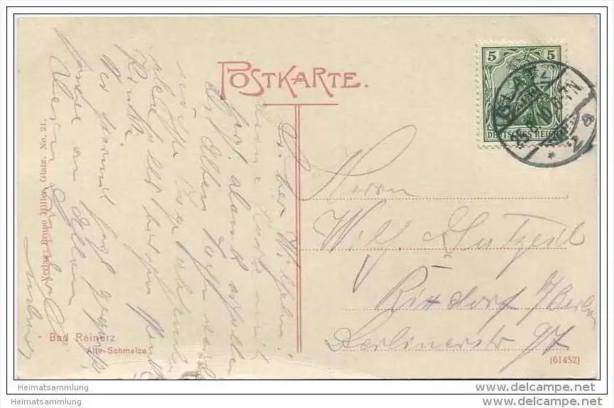 Bad Reinerz - Alte Schmelze - Verlag Bruno Hiller Glatz - kleiner Einriss und Stauchung unten Mitte (E6974) gel. 1910