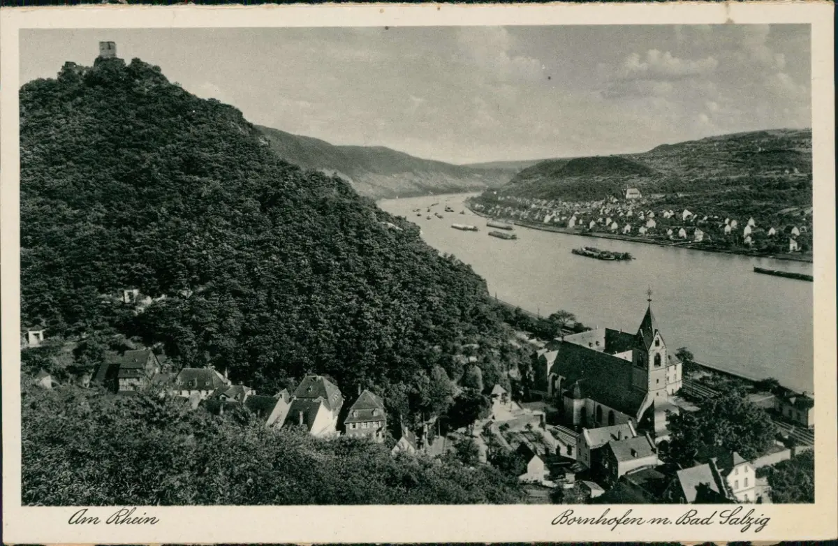 Bad Salzig-Boppard Panorama-Ansicht mit Blick auf Bornhofen und Rhein 1930