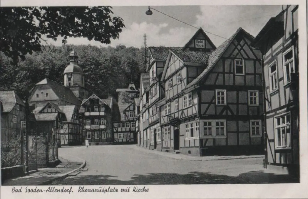 Bad Sooden-Allendorf - Rhenanusplatz mit Kirche - ca. 1960