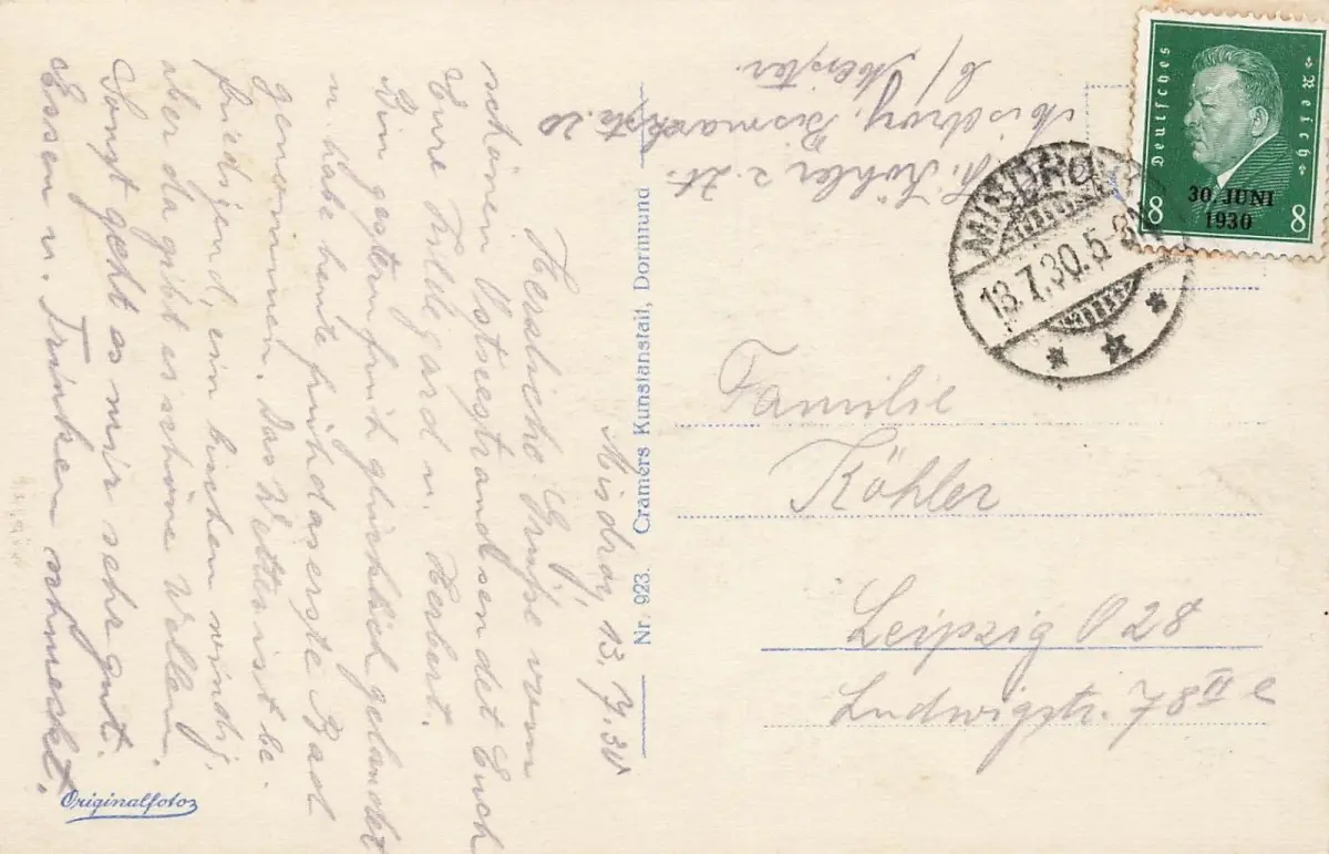 Rückseite: gelaufen 1930