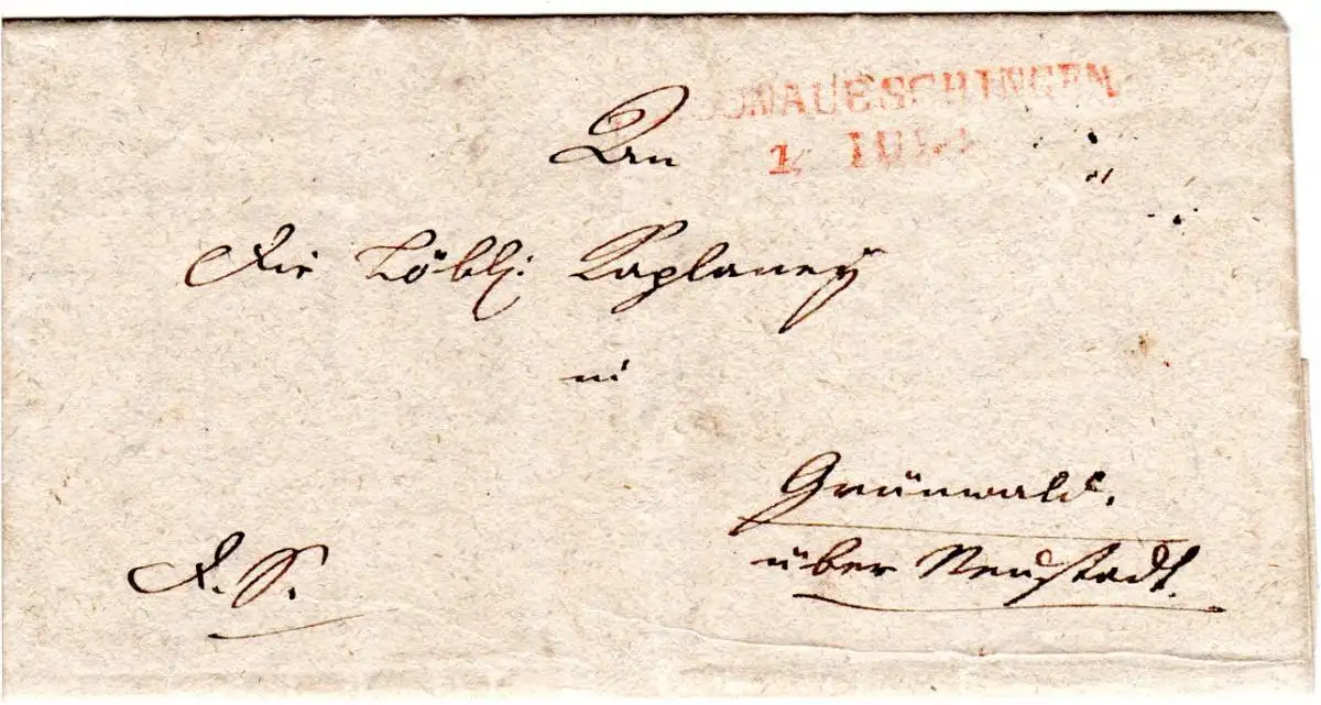 Baden 1823, roter L2 DONAUESCHINGEN auf Brief v. Laudorf n. Grünwald ü.Neustadt