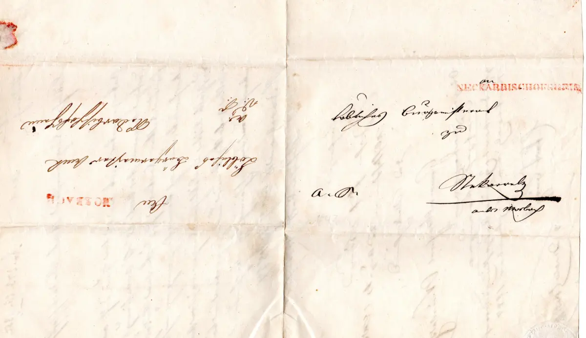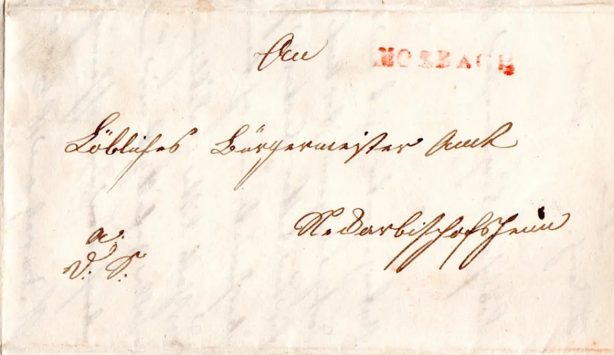 Baden 1847, L1 Neckarbischofsheim u. Mosbach auf hin+her verwendetem Faltbrief