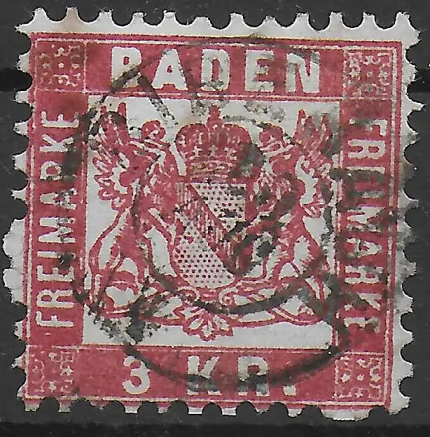 Baden: MiNr. 24, gestempelt: Farbübersättigter Druck