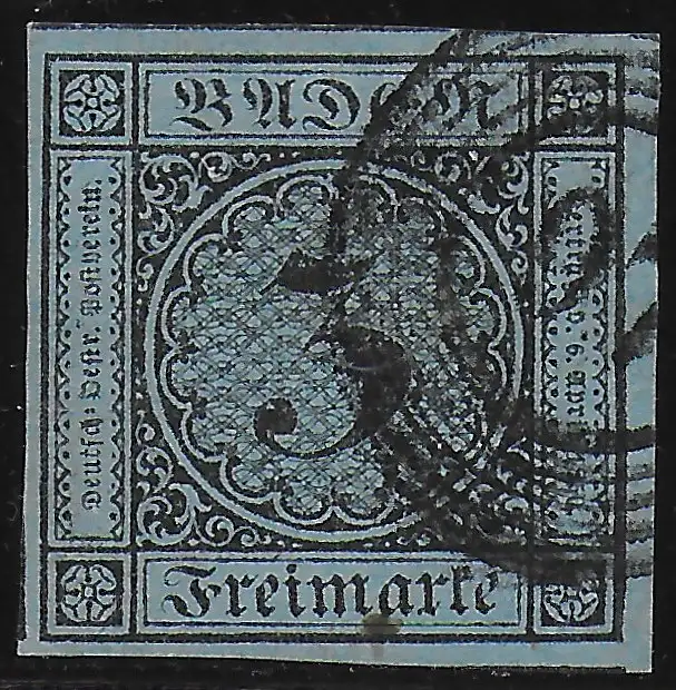 Baden: MiNr. 8, riesen randiges Luxusstück, gestempelt