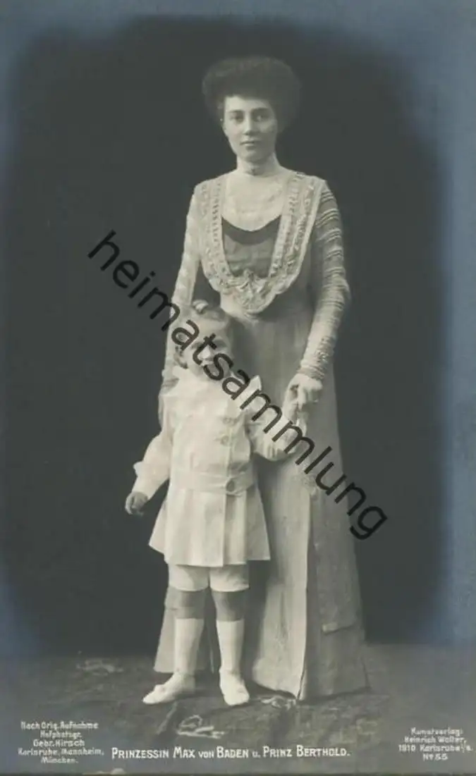 Baden - Prinzessin Max von Baden und Prinz Berthold - Aufnahme Gebr. Hirsch Karlsruhe - Verlag Heinrich Walter Karlsruhe 1910 (E45414)