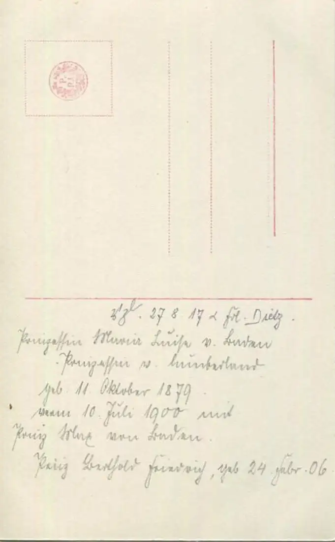 Baden - Prinzessin Max von Baden und Prinz Berthold - Aufnahme Gebr. Hirsch Karlsruhe - Verlag Heinrich Walter Karlsruhe