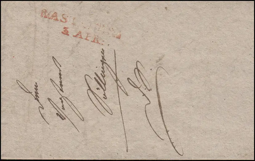 Baden Vorphilatelie Brief Zweizeiler RASTATT 3. April (1824) nach Villingen