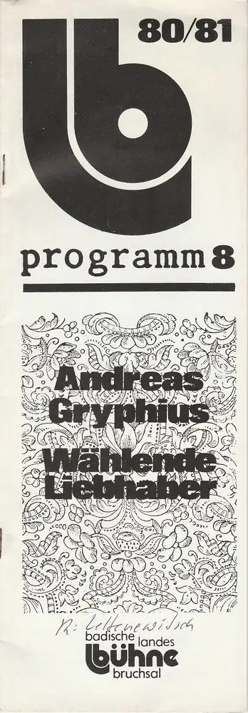 Badische Landesbühne, Alf Andre, Arnulf Hermer, Petra Adam: Programmheft Andreas Gryphius WÄHLENDE LIEBHABER Spielzeit 1980 / 81 Heft 8.