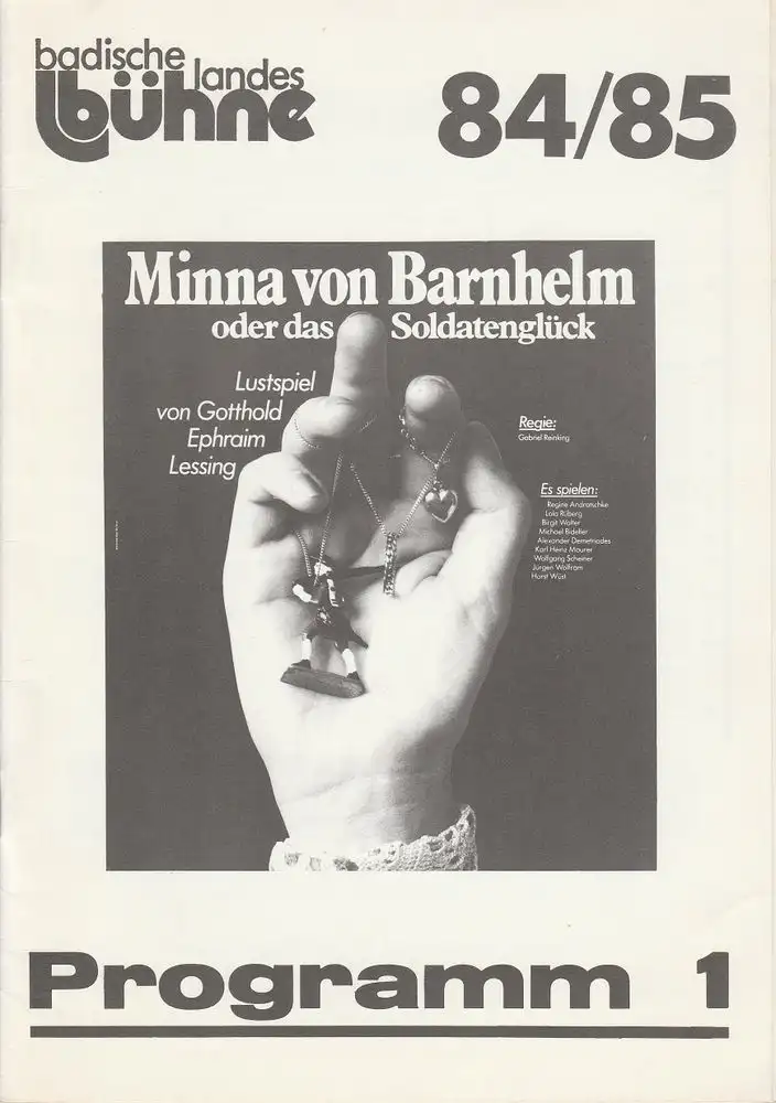 Badische Landesbühne Bruchsal, Alf Andre, Franz Csiky: Programmheft Minna von Barnhelm oder Das Soldatenglück. Premiere 22.09.1984 Spielzeit 1984 / 85 Heft 1.