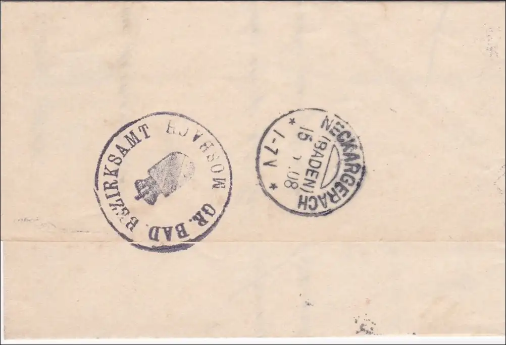 Badisches Bezirksamt Mosbach an Bürgermeisteramt Neckargerach 1908