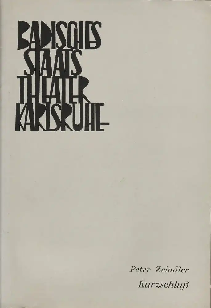 Badisches Staatstheater Karlsruhe, Hans-Georg Rudolph, Wilhelm Kappler: Programmheft Uraufführung KURZSCHLUß. Stück von Peter Zeindler Spielzeit 1968 / 69 Heft 17.