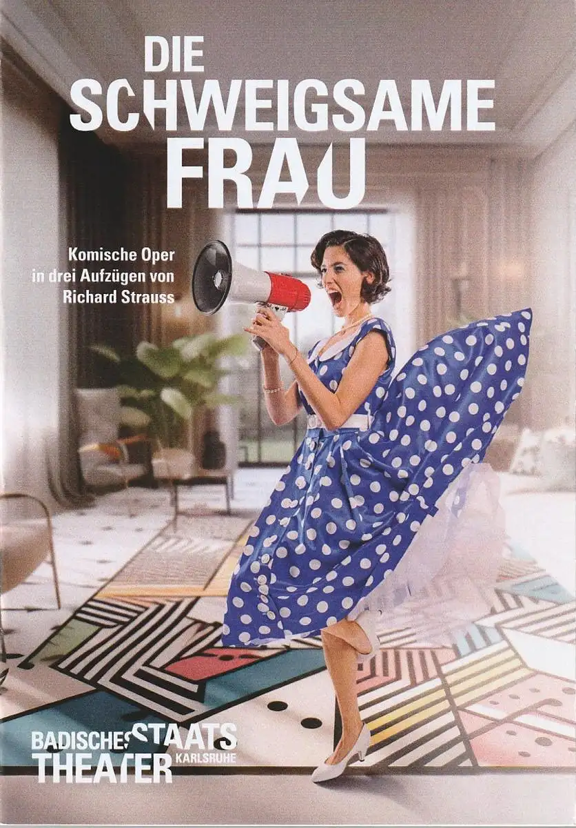 Komische Oper in drei Aufzügen. Libretto von Stefan Zweig nach Ben Jonson s Komödie Epicoene or The Silent Woman. Musikalische Leitung: Georg Fritzsch. Nachdirigat: Yura Yang. Regie: Mariame Clement. Bühne und Kostüme: Julia Hansen. Mitwirkende: Friedemann Röhlig, Christina Niessen, Tomohiro Takada, Eleazar Rodriguez, Danae Kontora, Henriette Schein, Florence Losseau, u.a. - Theaterprogramm, Opernprogramm, Ballettprogramm, Musicalprogramm, Konzertprogramm, Theatermemorabilia, Programmhefte Sammlung, deutsche Theatergeschichte.