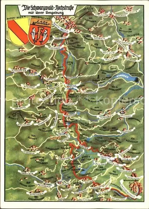 Baerenbach Wuerttemberg Schwarzwald Hochstrasse Panoramakarte Aastatt Mahlsdorf Neusatz Urbach postalisch nicht gelaufen nach 1965 Erhaltung siehe scans Alte Ansichtskarte Postkarte NataID47