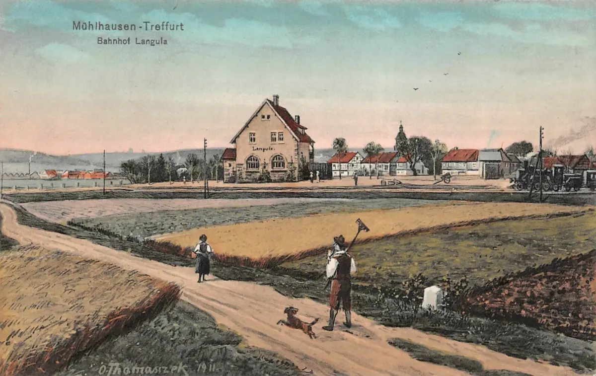 Bahnhof Langula in Treffurt Künstlerkarte Thomasizek Thüringen AK
