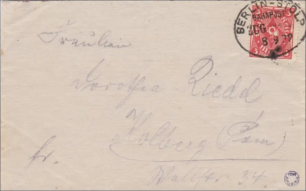 Bahnpost: Brief mit Zugstempel Berlin-Stolp 1929