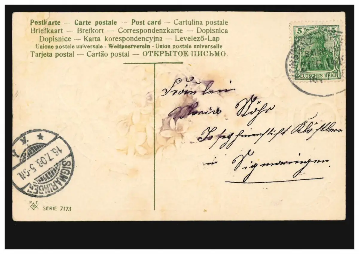 Ankunftsstempel SIEGMARINGEN 16.7.08