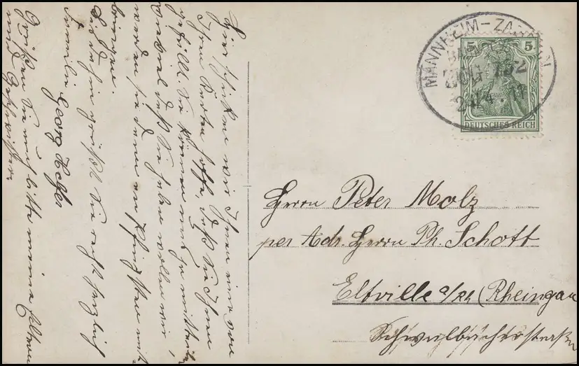 Bahnpost MANNHEIM - ZABERN (?) ZUG 752 - 24.4.11 auf AK nach Eltville/Rhein