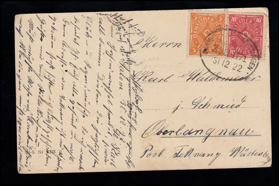 Bahnpost: MIMMENHAUSEN - FRICKINGEN BAHNPOST ZUG 1771 - 31.12.22 auf Liebes-AK