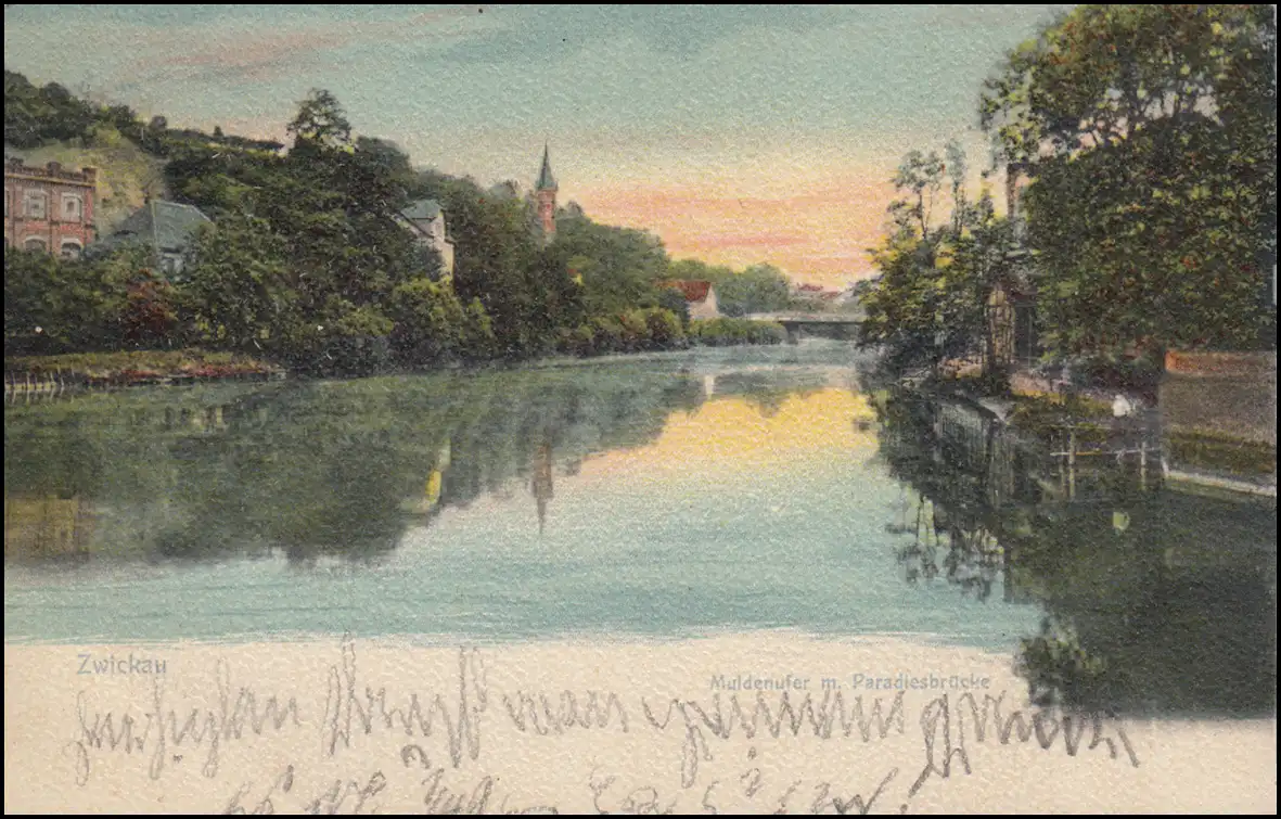Ansichtskarte Zwickau Muldenufer mit Paradiesbrücke
