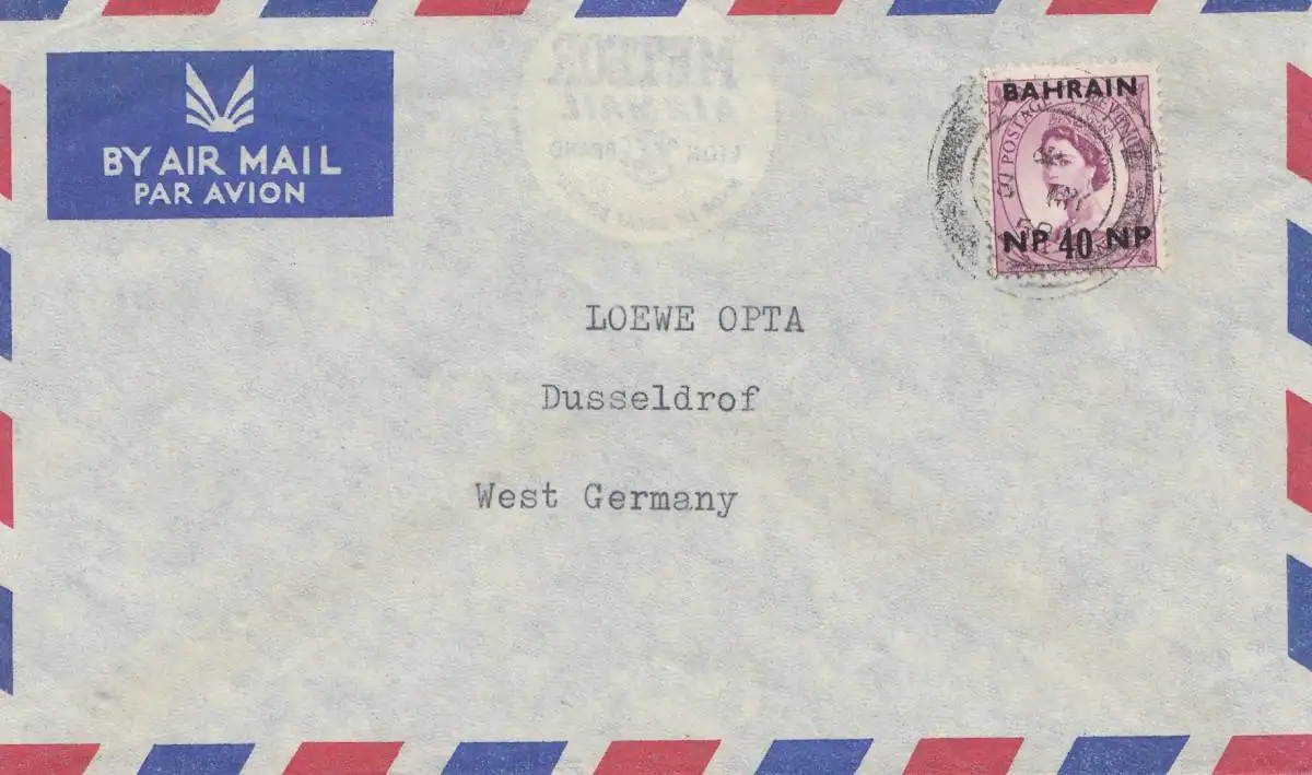Bahrain: air mail to Düsseldorf, Fa. Loewe