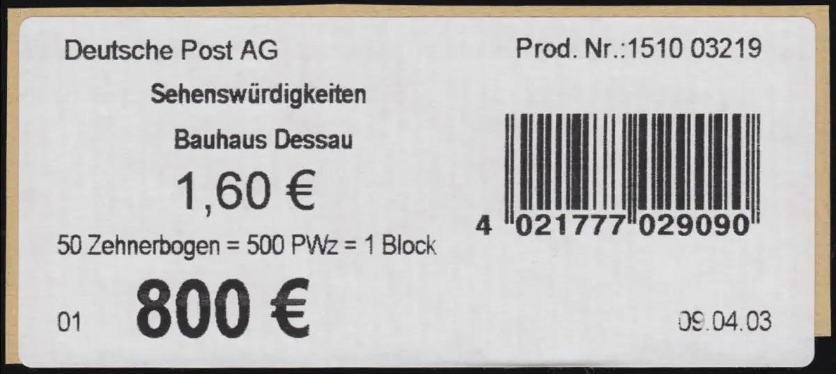 Ein Angebot in Briefmarken BRD 2000-2009 - 18.390 weitere Angebote in dieser Kategorie