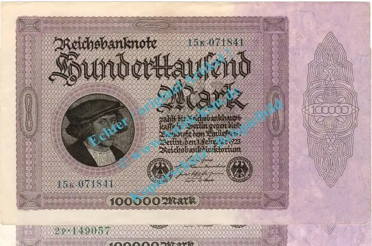 Gutschein / Banknote über Einhunderttausend Reichsmark von 1923 , Weimarer Republik - InflationGrabowski / Rosenberg / Pick : DEU-93.e / 82 / P.83