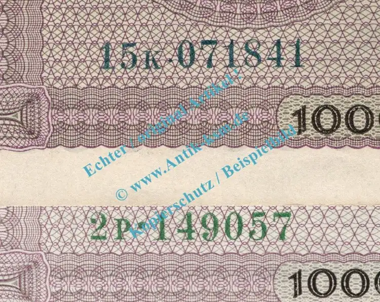 Das Bild zeigt einen der hier angebotenen Sätze oder Scheine als Beispiel / Muster