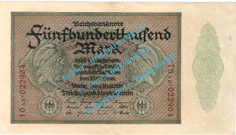 Gutschein / Banknote über Fünfhunderttausend Reichsmark von 1923 , Weimarer Republik - InflationGrabowski / Rosenberg / Pick : DEU-99.e / 87 / P.88