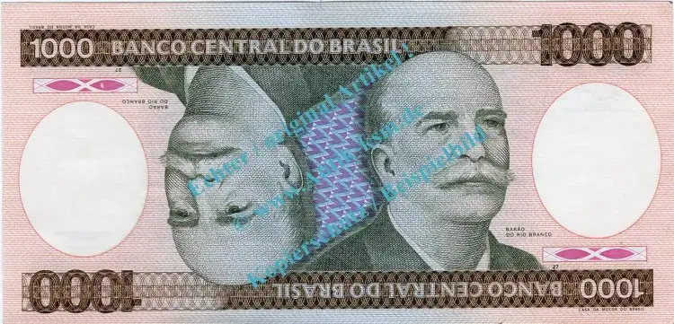 Banknote Brasilien - Brazil , 1.000 Cruzeiros Schein ND 1981-86 in unc , kfr