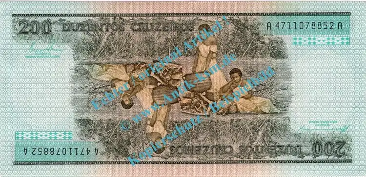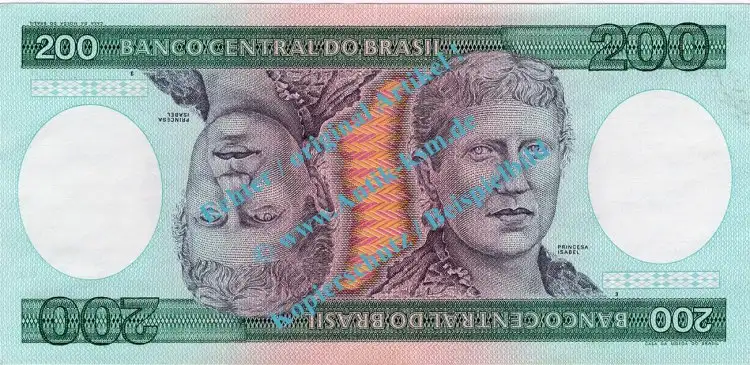 Banknote Brasilien - Brazil , 200 Cruzeiros Schein ND 1981-84 in unc , kfr