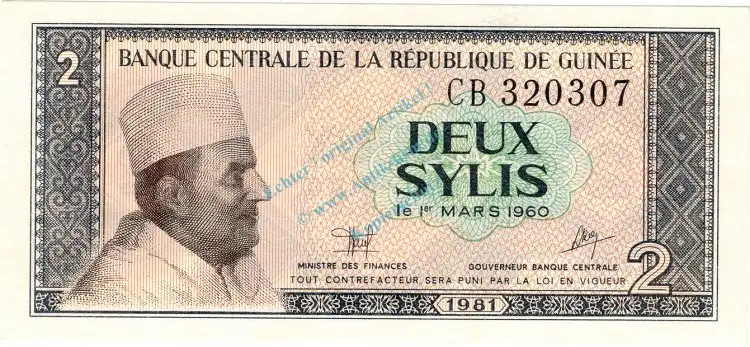 Banknote Guinea , 2 Sylis Schein 1981 -King Mohammed V- unc-kfr WPM.21