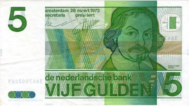 Banknote Niederlande , 5 Gulden Schein 1973 -Joost van den Vondel- gbr. P.95