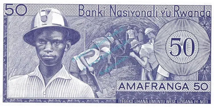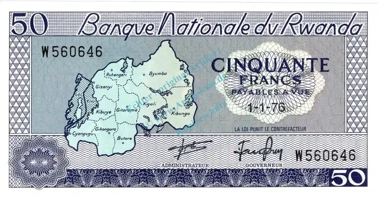 Banknote Ruanda , 50 Francs Schein 1975 -Map- unc-kfr WPM.7.c