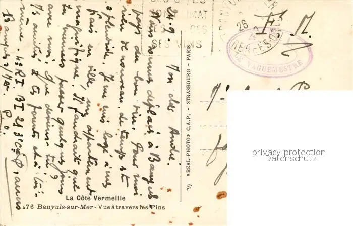 Banyuls-sur-Mer Vue à travers les pins Côte Golf du Lion Côte d'Azur Banyuls-sur-Mer postalisch gelaufen 1921-1965 Feldpostkarte Erhaltung siehe scans [FriedD77] Feldpostkarte Frierer