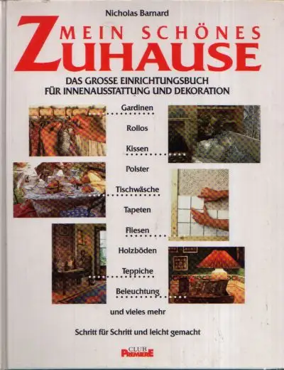 Barnard, Nicholas; Mein schönes Zuhause; Einrichtungsbuch; Innenausstattung; Dekoration; Heimtextilien; Vorhänge; Rollos; Bettwäsche; Kissen; Einfache Polsterarbeiten; Tischwäsche; Lampenschirme; Renovieren; Tapezieren; Fliesen; Fussböden und Teppiche; Regale; Lampen und Leuchten; Zimmerpflanzen