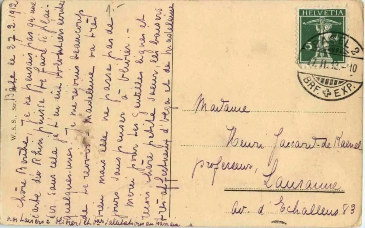 Danke. Alles Bestens. Können Sie mir allenfalls mitteilen, aus welchem Jahr die Postkarte stammt? Besten Dank.