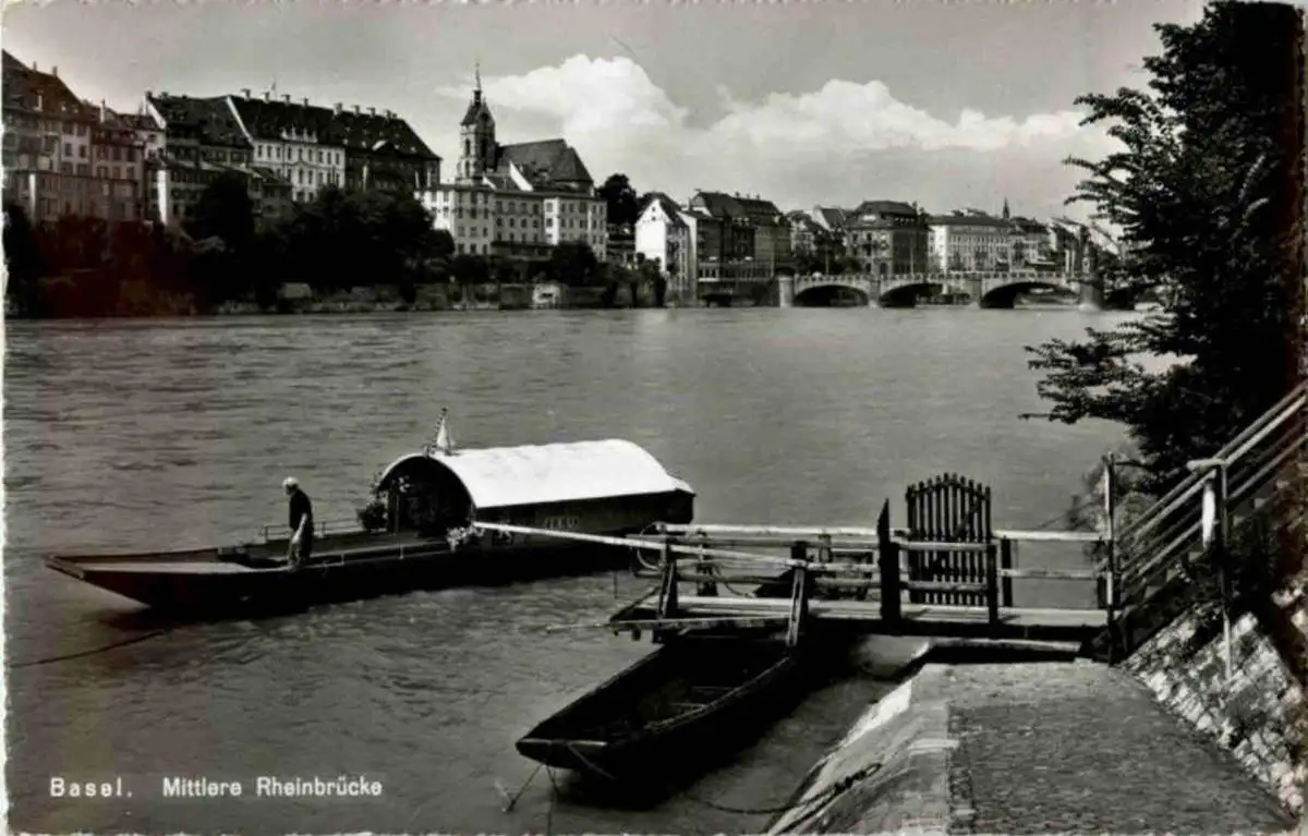 Basel - Mittlere Rheinbrücke mit Fähre -159226
