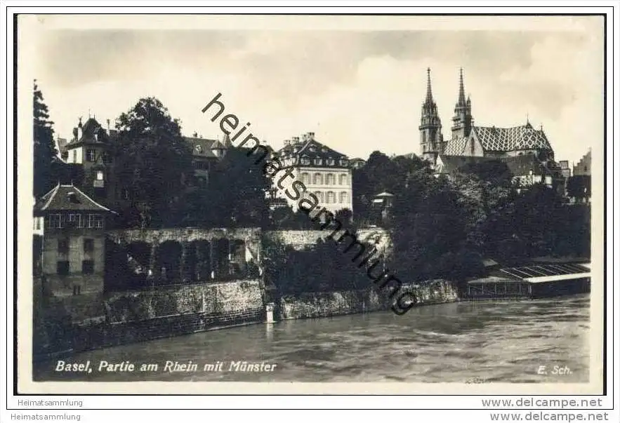 Basel - Partie am Rhein mit Münster - Verlag C. I. Wunderlin & Co. Basel (G22280)