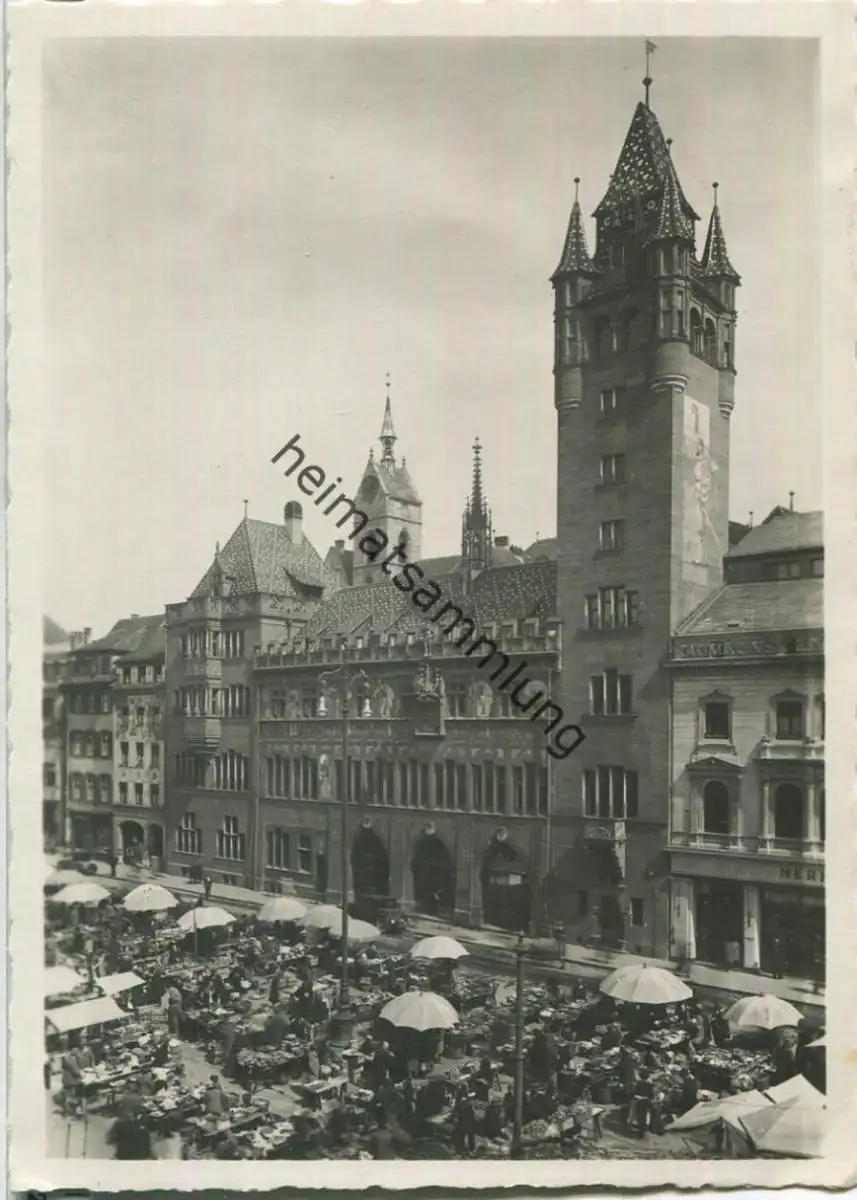 Basel - Rathaus - Markt - Foto-AK Grossformat - Verlag Jeck Basel - Rückseite beschrieben 1930 - rückseitig Klebestellen (E39545) *
