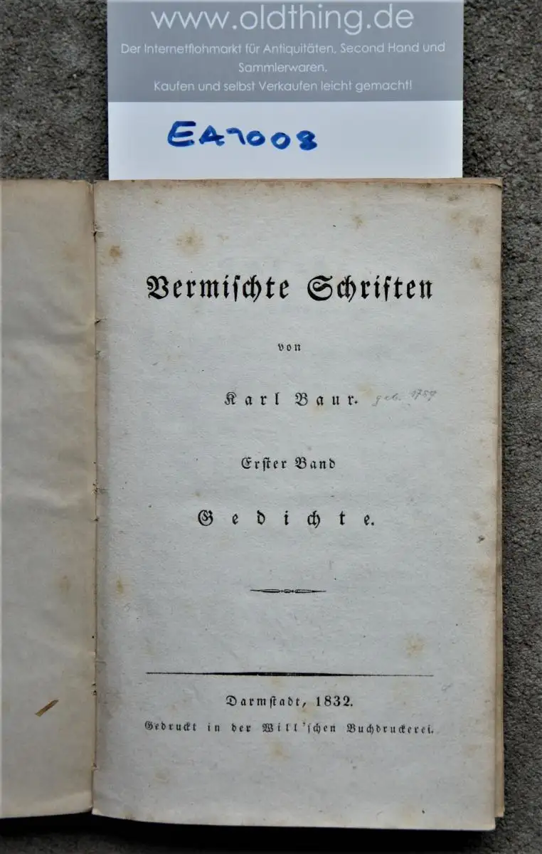 Baur, Karl: Vermischte Schriften. Erster Band.