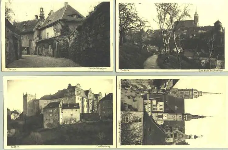 Bautzen 4x ab 1912 (intern : 1016587) Artikelbeschreibung : Siehe Scan. Weitere Infos : Vier alte Ansichtskarten von Bautzen aus der Reihe "Saechsische Heimatschutz-Postkarten". Postleitzahlenbereich 02625. Eine AK ist beschrieben u. postalisch mit Marke u. Stempel von 1912